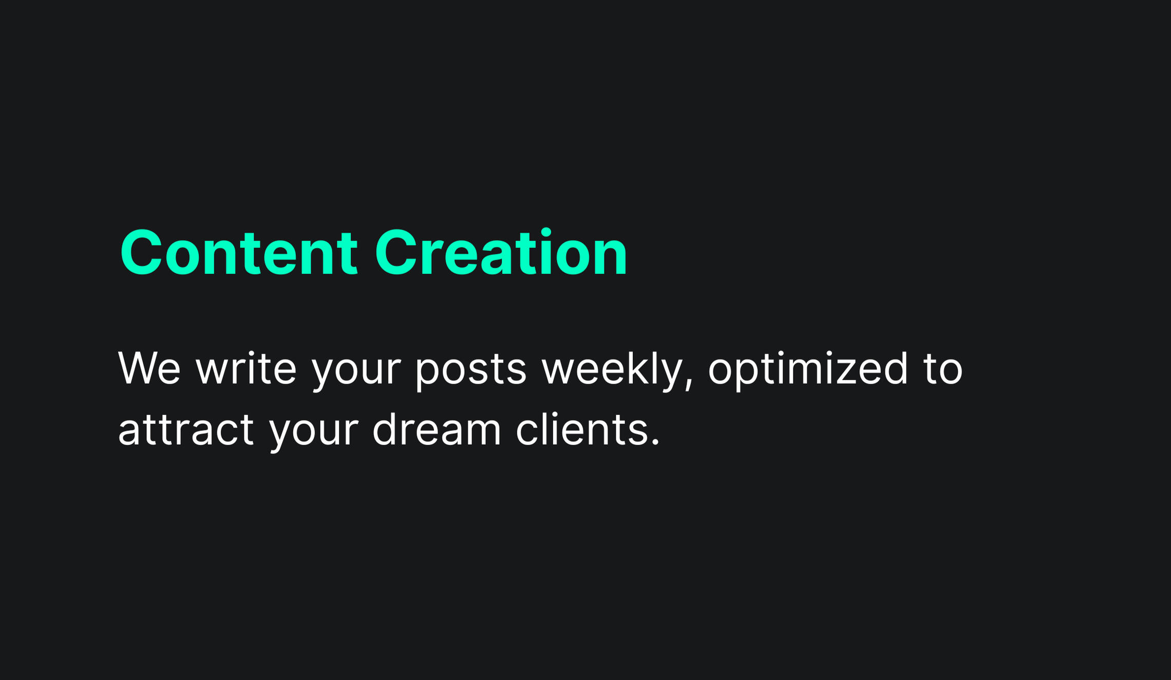 This is where the magic happens. While you're deep in your service/product development, fixing churn, leading your team, and focusing on sales, we’re turning your expertise into a content engine that drives qualified leads on autopilot. Your brand works 24/7 so you don’t have to.